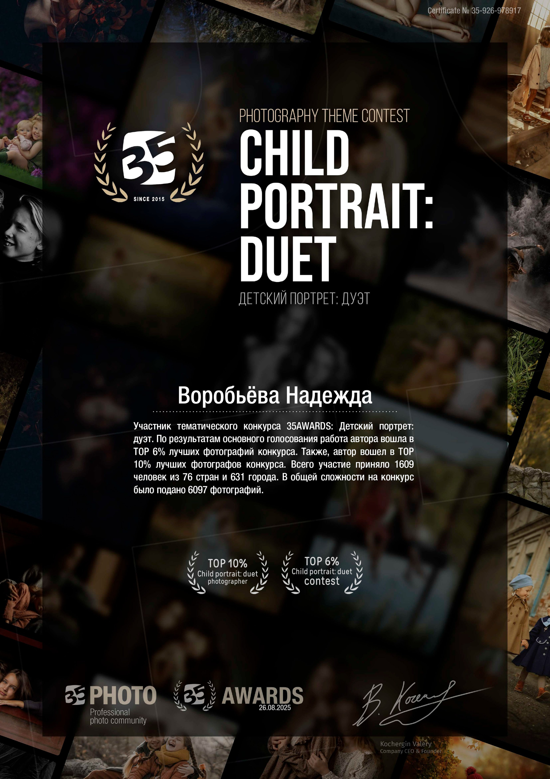 С марта 2025 года Член клуба ART Portrait, с апреля 2025 член Лиги профессиональных фотографов ligafotopro.ru/nadezgdavorobyova.